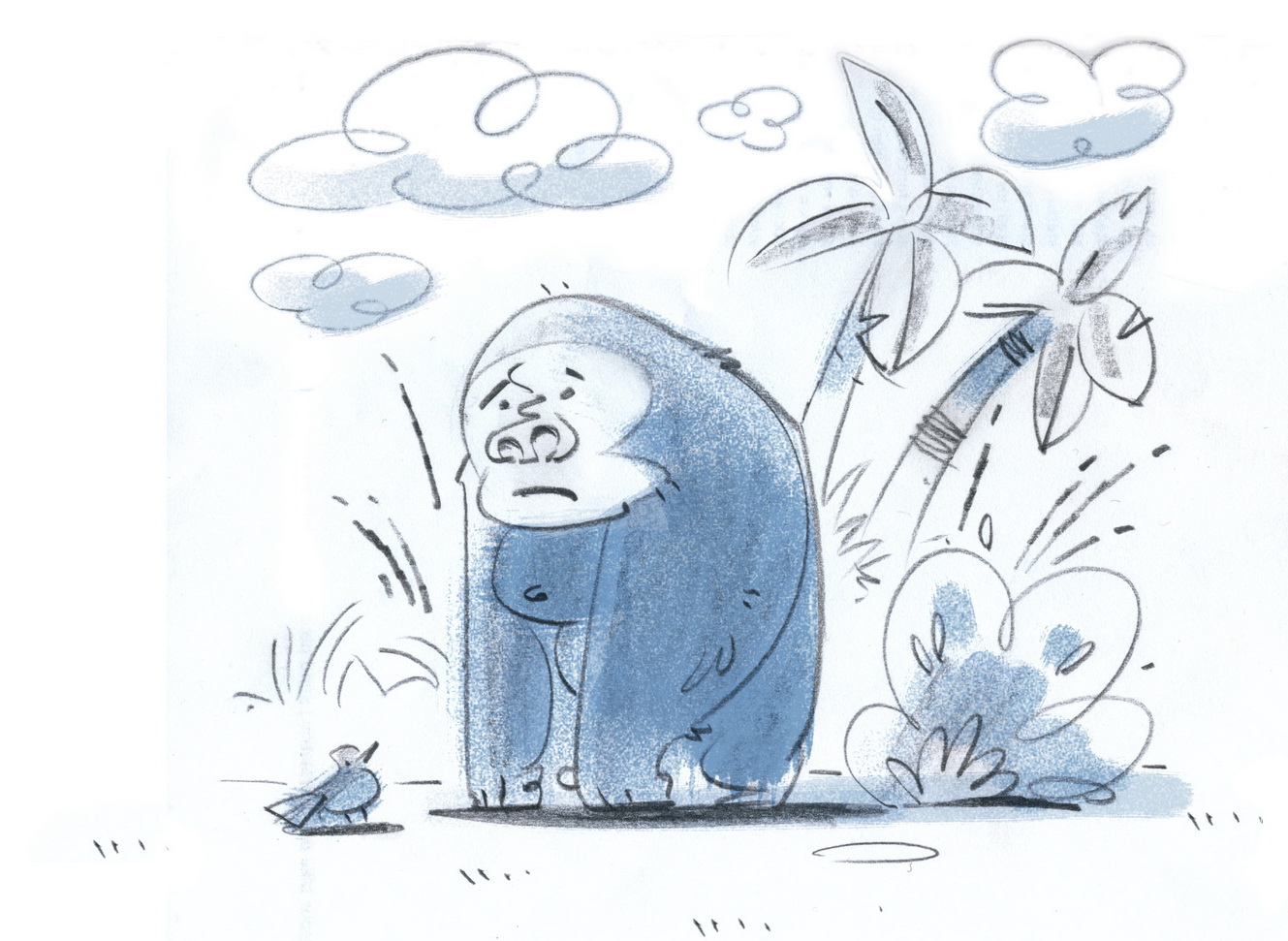 A drawing of a jungle cat. Pencil and water colour.